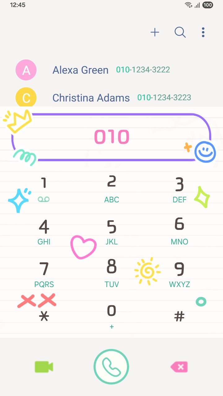 • The dialer and keyboard, including the call button, numbers, and symbols, are customized beyond the default settings to help you stand out with your personal style:
