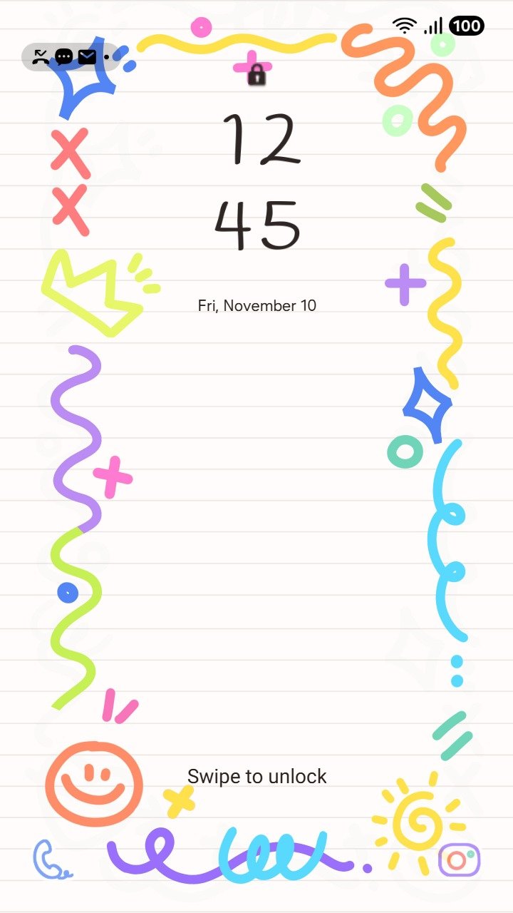 Samsung Themes: ❤️Mun❤️ Bright Doodle Frame ~❤️ Premium Theme vibrant hand-drawn doodles on a lined notebook background
