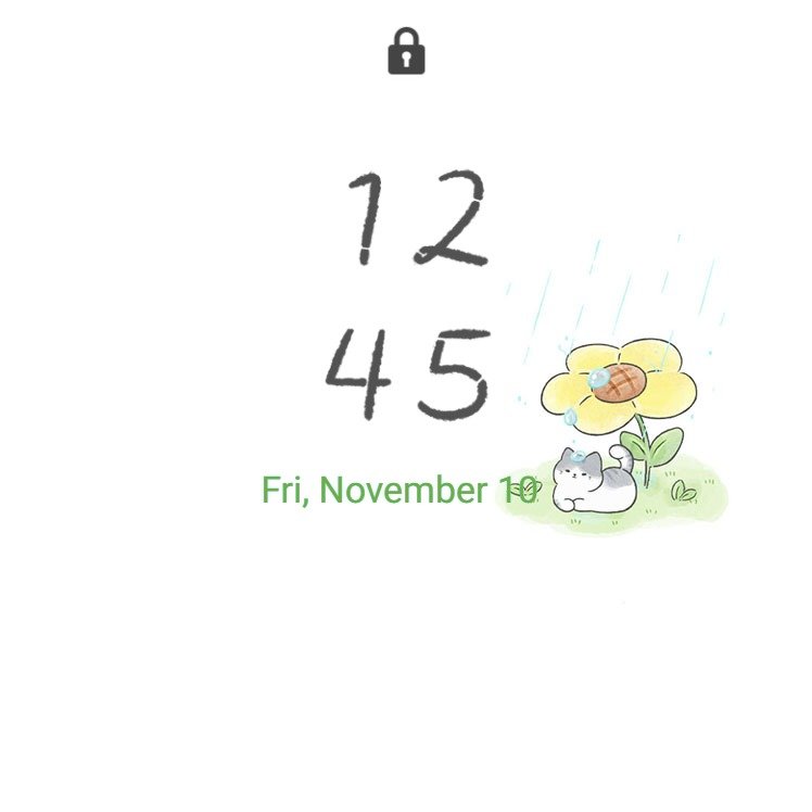 Samsung Themes: ❤️Mun❤️ Cat Under Rainy May ~❤️ Premium Theme a cozy cat resting under flowers while gentle rain softly falls