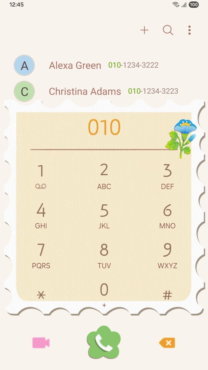 • The dialer and keyboard, including the call button, numbers, and symbols, are customized beyond the default settings to help you stand out with your personal style: