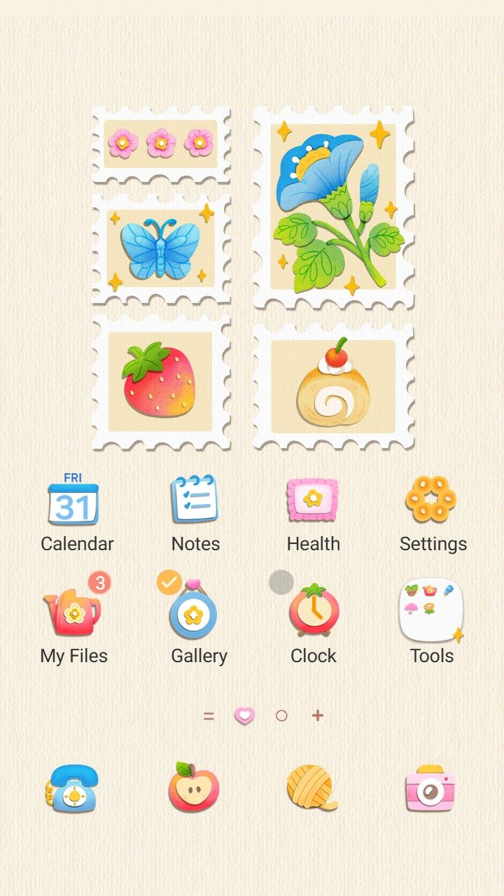 Samsung Themes: ❤️Mun❤️ Colorful Stamp ~❤️ Premium Theme bright hand drawn stamps with flower, butterfly and sweets
