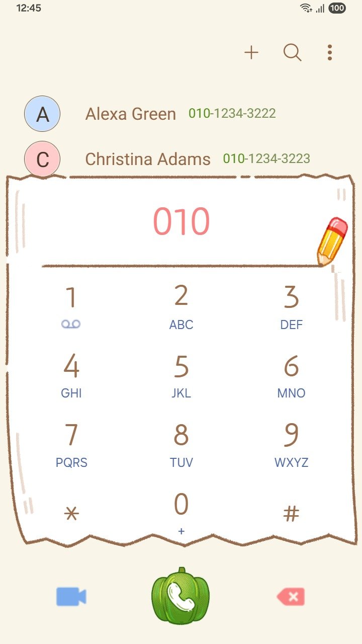 • The dialer and keyboard, including the call button, numbers, and symbols, are customized beyond the default settings to help you stand out with your personal style: