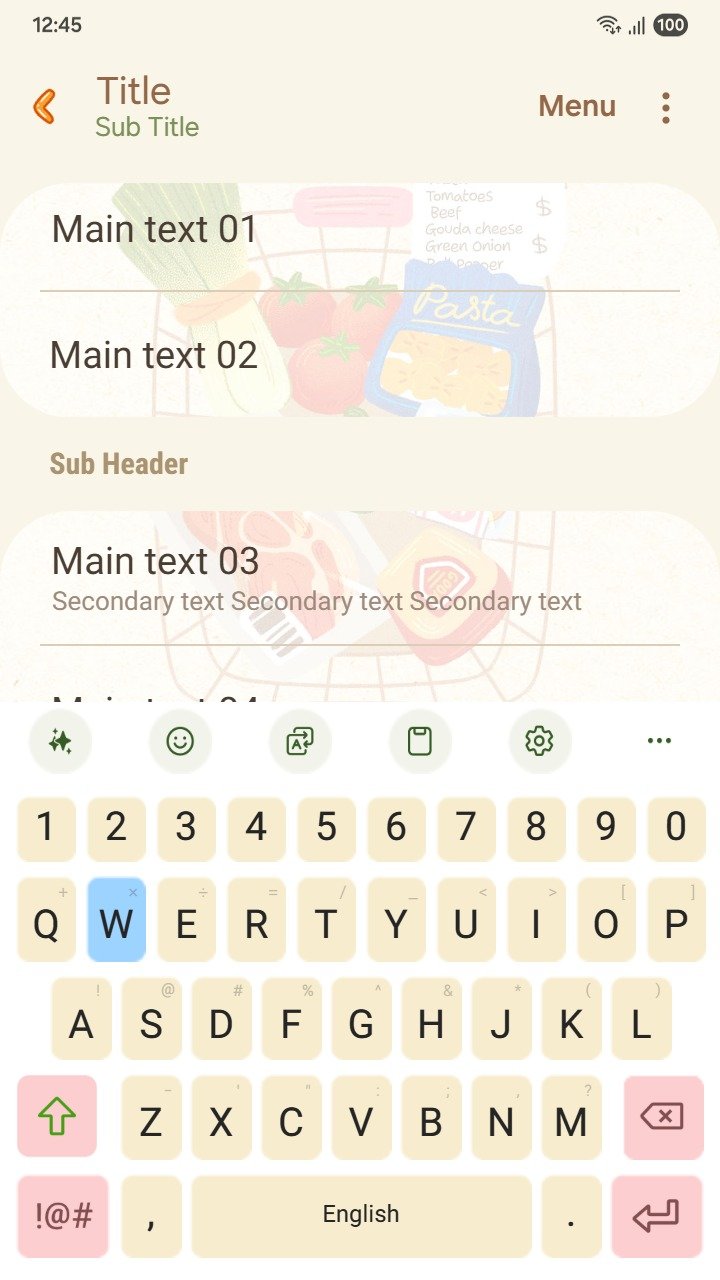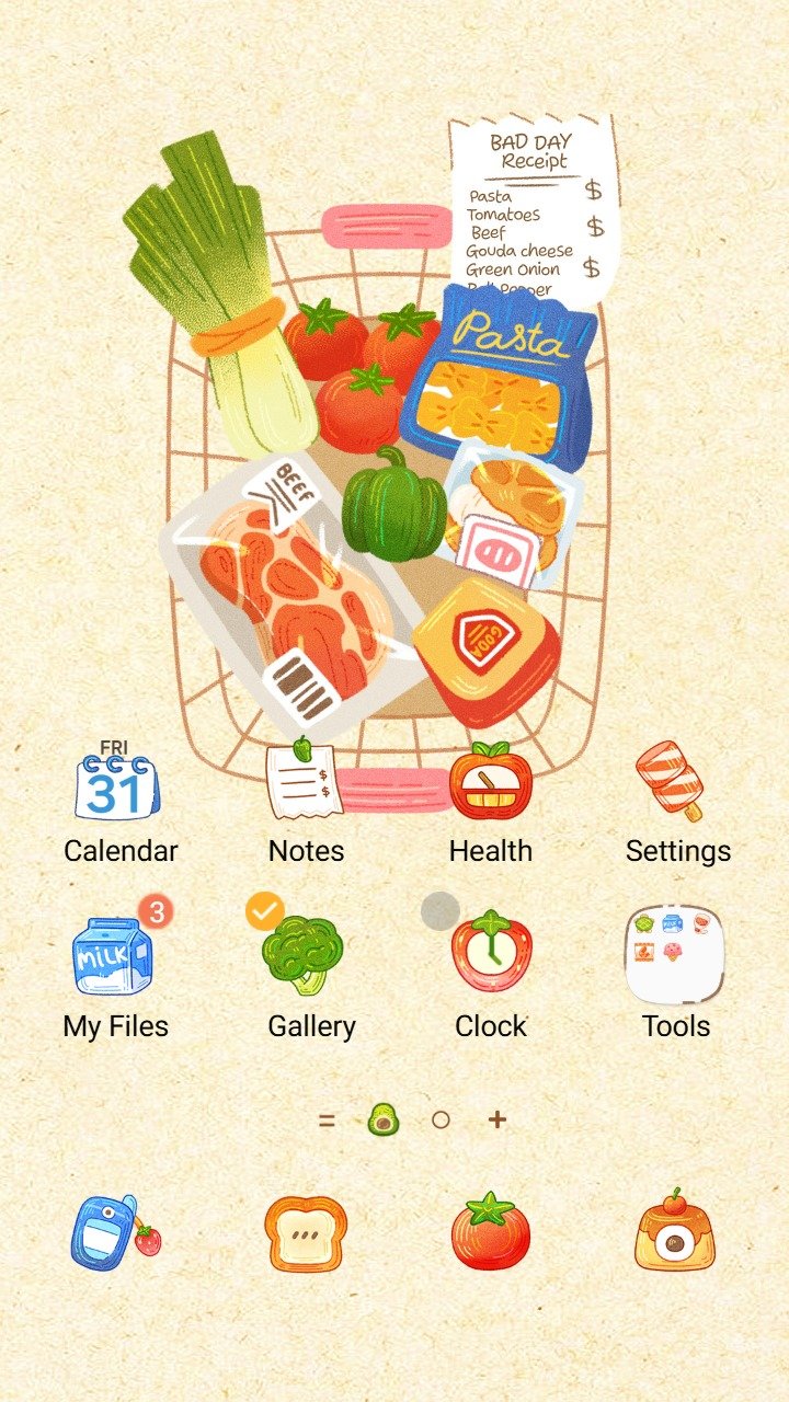 Samsung Themes: ❤️Mun❤️ Cozy Grocery Cart ~❤️ Premium Theme a warm illustrated grocery cart filled with ingredients for comforting home cooking
