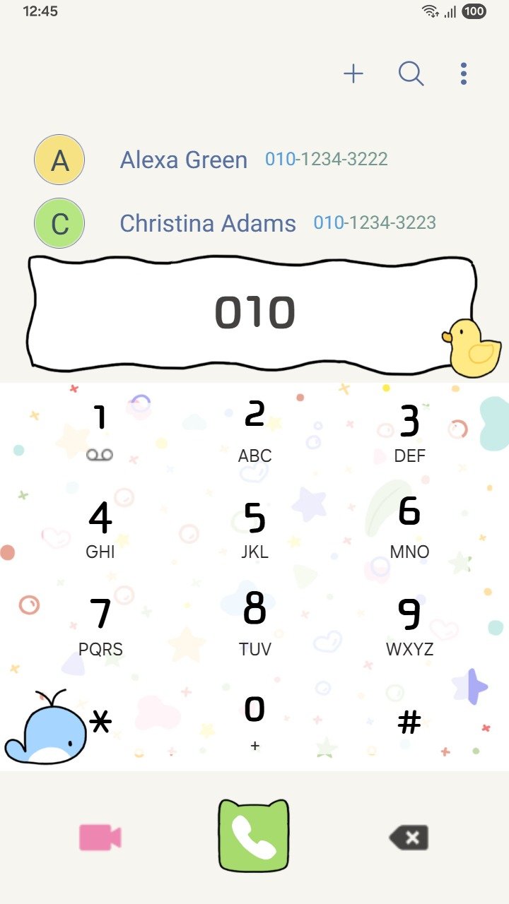 • The dialer and keyboard, including the call button, numbers, and symbols, are customized beyond the default settings to help you stand out with your personal style: