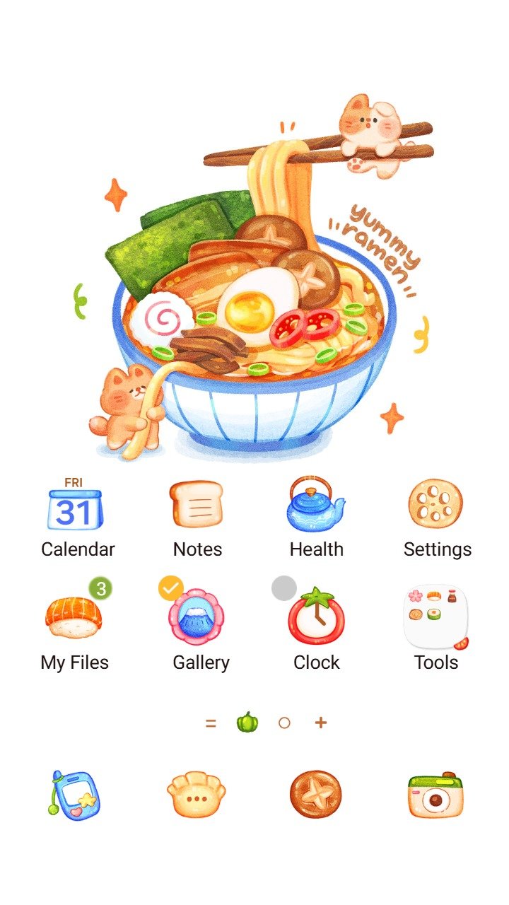Samsung Themes: ❤️Mun❤️ Cute Ramen Friends ~❤️ Premium Theme adorable kittens enjoy a warm, colorful bowl of ramen