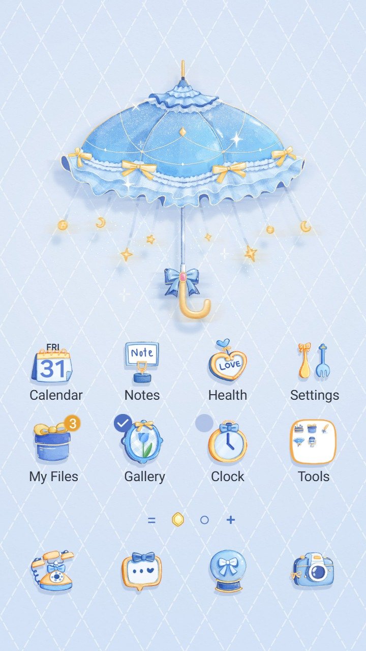 Samsung Themes: ❤️Mun❤️ Dreamy Blue Umbrella ~❤️ Premium Theme lovely blue umbrella decorated with frills, gold stars and moon charms