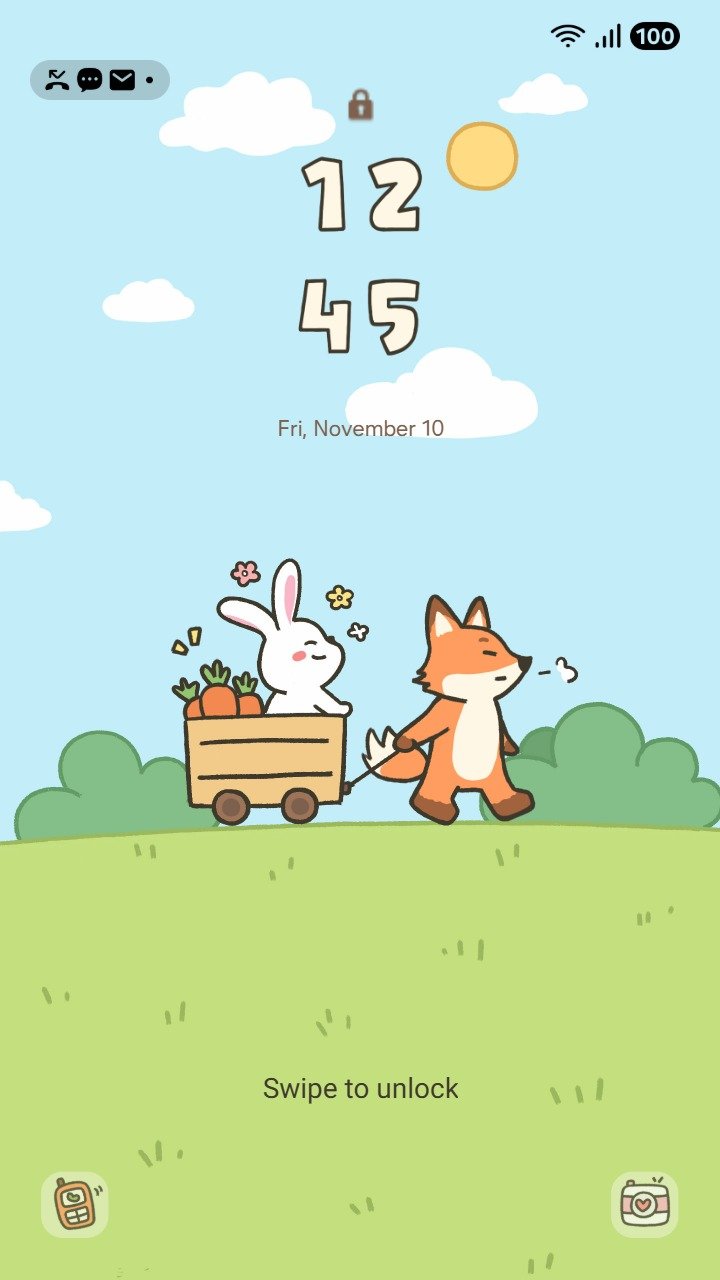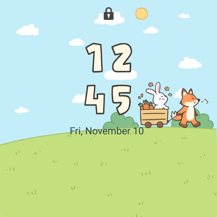 Samsung Themes: ❤️Mun❤️ Fox and Bunny ~❤️ Premium Theme cute fox and bunny with carrots on grassy hill