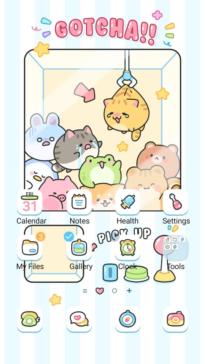 Samsung Themes: ❤️Mun❤️ Gotcha Claw Game ~❤️ Premium Theme adorable animals waiting to be picked in a playful claw machine scene