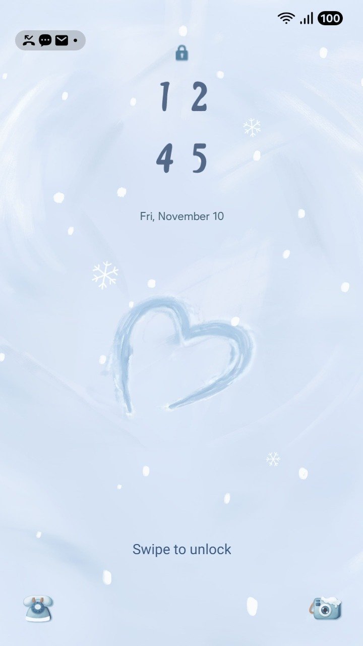 Samsung Themes: ❤️Mun❤️ Hello Winter ~❤️ Premium Theme a gentle heart surrounded by soft snowflakes welcomes the winter season