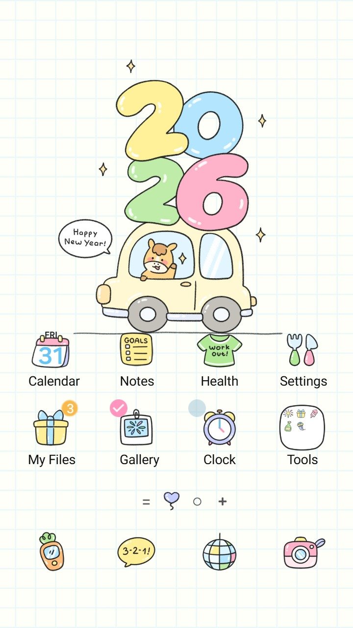 Samsung Themes: ❤️Mun❤️ Horse Journey New Year ~❤️ Premium Theme a happy horse drives into 2026, celebrating a joyful new beginning
