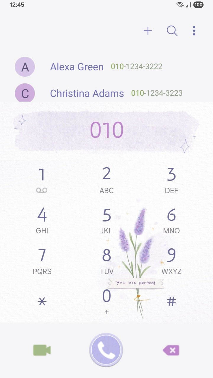 • The dialer and keyboard, including the call button, numbers, and symbols, are customized beyond the default settings to help you stand out with your personal style: