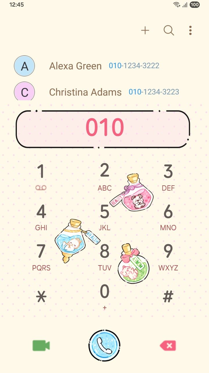 • The dialer and keyboard, including the call button, numbers, and symbols, are customized beyond the default settings to help you stand out with your personal style: