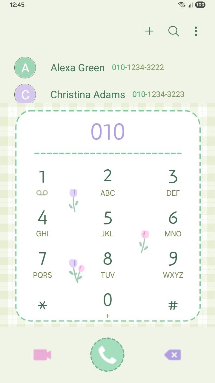 • The dialer and keyboard, including the call button, numbers, and symbols, are customized beyond the default settings to help you stand out with your personal style: