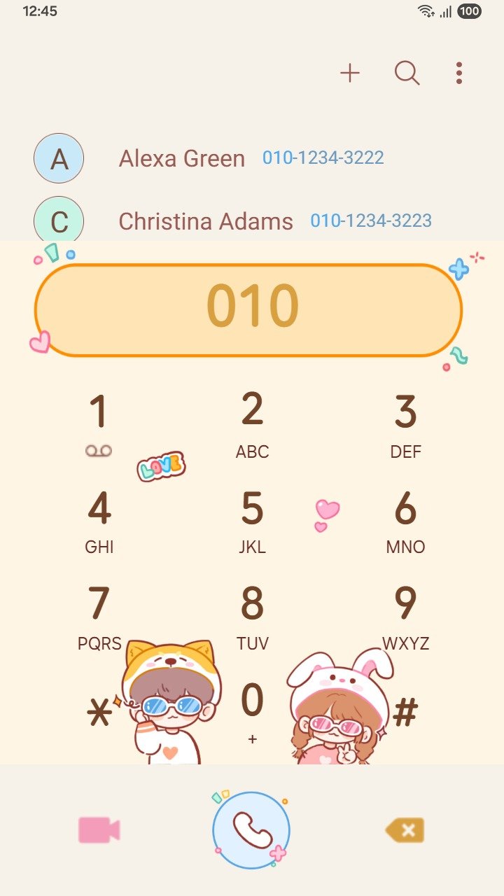 • The dialer and keyboard, including the call button, numbers, and symbols, are customized beyond the default settings to help you stand out with your personal style: