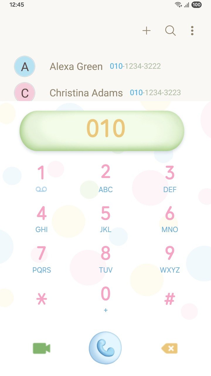 • The dialer and keyboard, including the call button, numbers, and symbols, are customized beyond the default settings to help you stand out with your personal style: