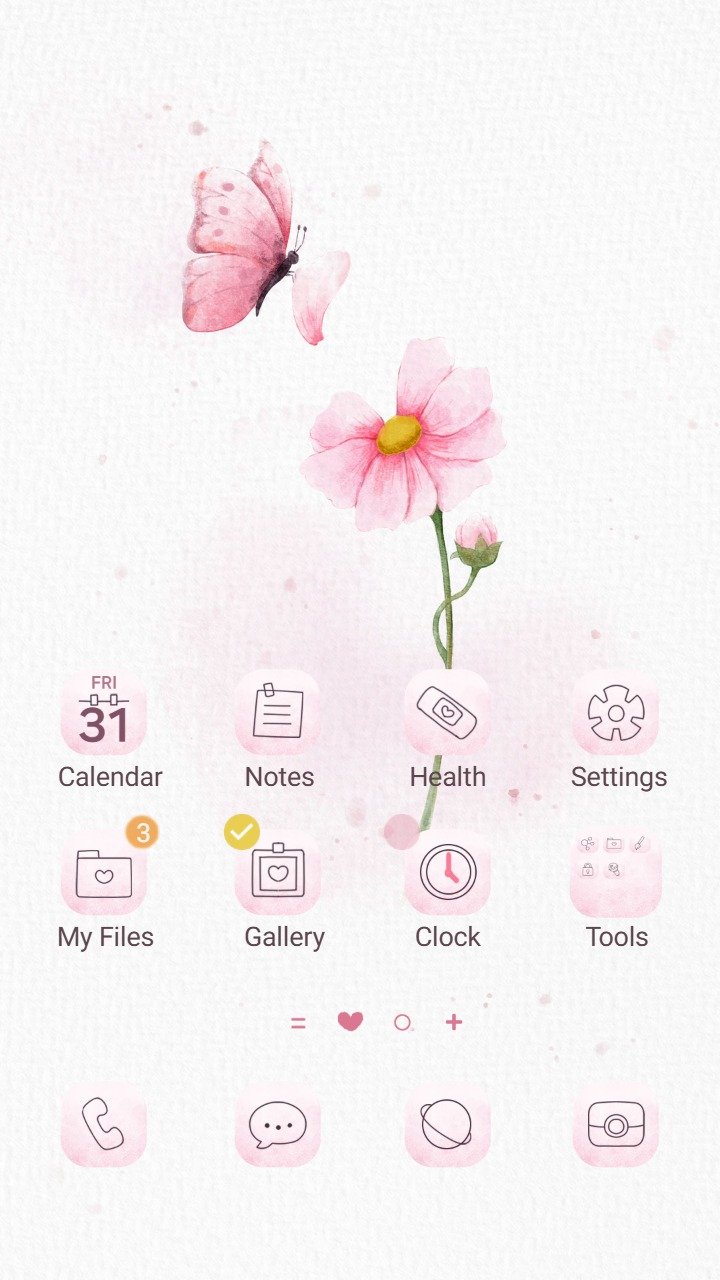 Samsung Themes: ❤️Mun❤️ Pink Floral Butterfly ~❤️ Premium Theme a gentle butterfly flutters above a soft pink flower in bloom