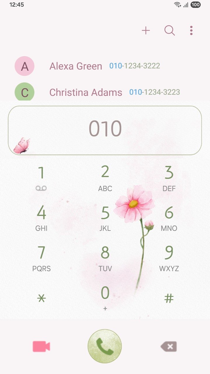 • The dialer and keyboard, including the call button, numbers, and symbols, are customized beyond the default settings to help you stand out with your personal style: