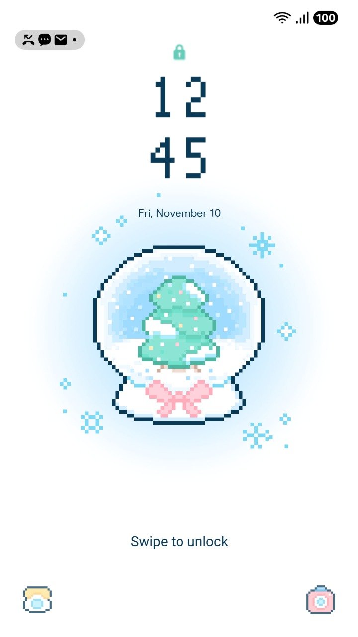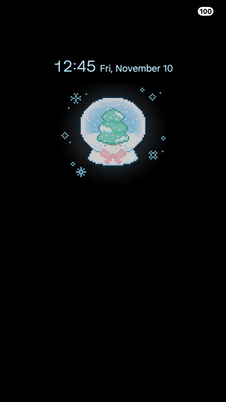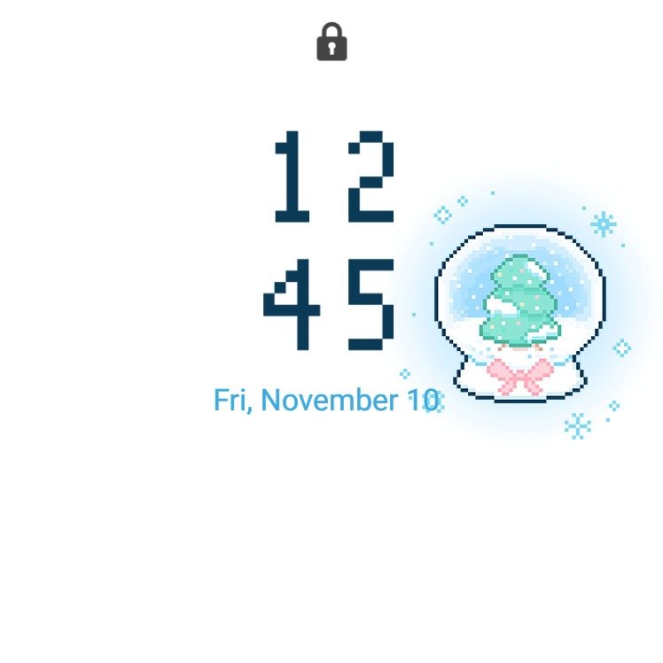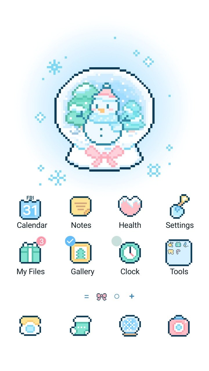 Samsung Themes: ❤️Mun❤️ Pixel Snow Globe ~❤️ Premium Theme a charming snowman glows inside a tiny sparkling snow globe
