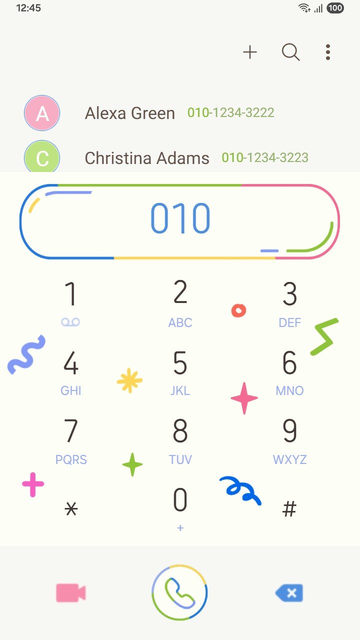 • The dialer and keyboard, including the call button, numbers, and symbols, are customized beyond the default settings to help you stand out with your personal style:
