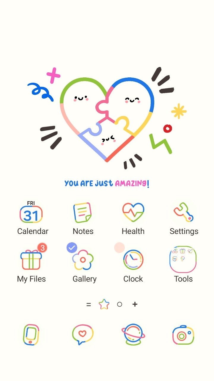 Samsung Themes: ❤️Mun❤️ Playful Puzzle ~❤️ Premium Theme smiling puzzle pieces holding hands to celebrate diversity and individuality