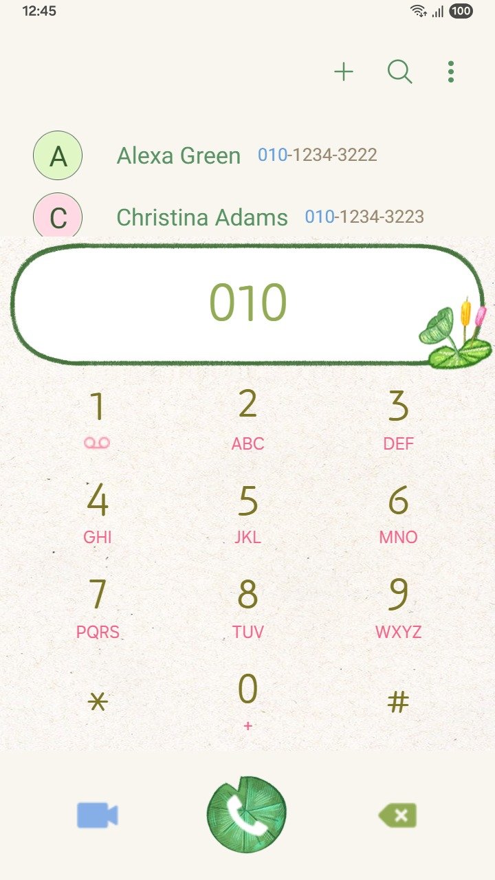 • The dialer and keyboard, including the call button, numbers, and symbols, are customized beyond the default settings to help you stand out with your personal style: