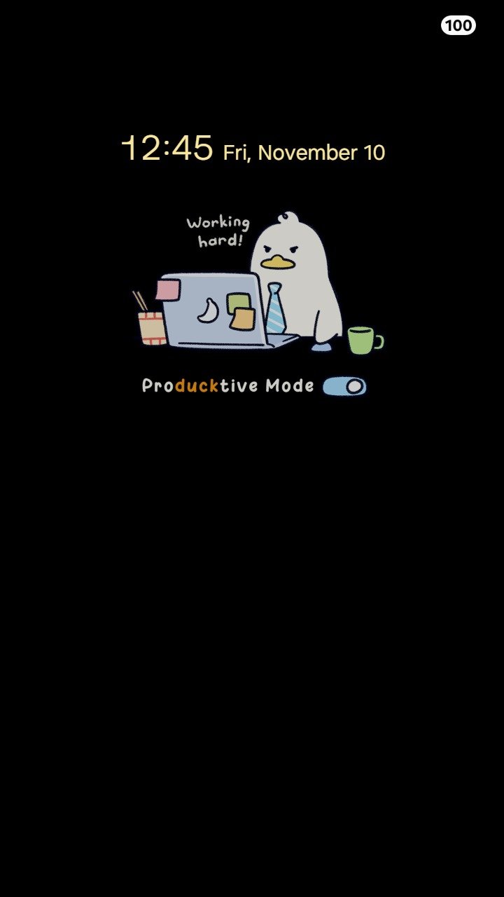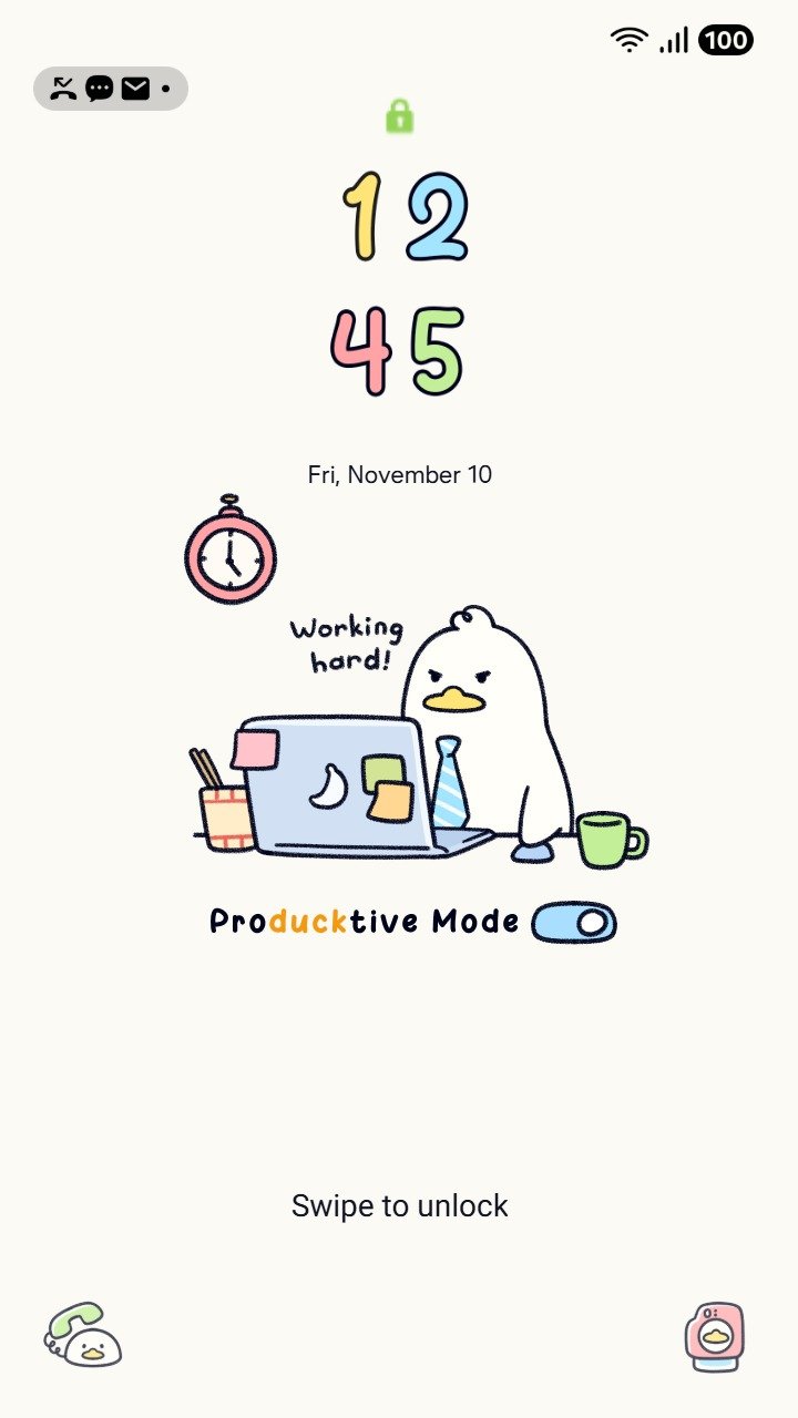 Samsung Themes: ❤️Mun❤️ Producktive Duck ~❤️ Premium Theme a cute duck focused on work with a laptop and coffee