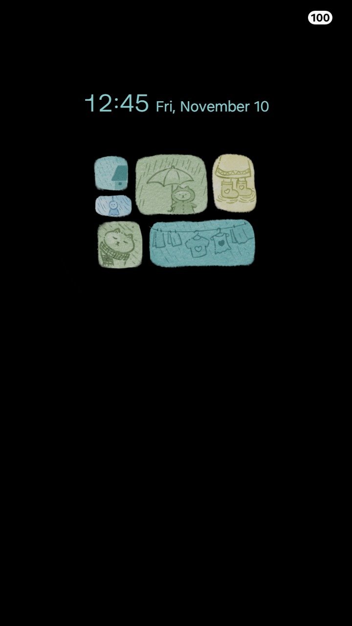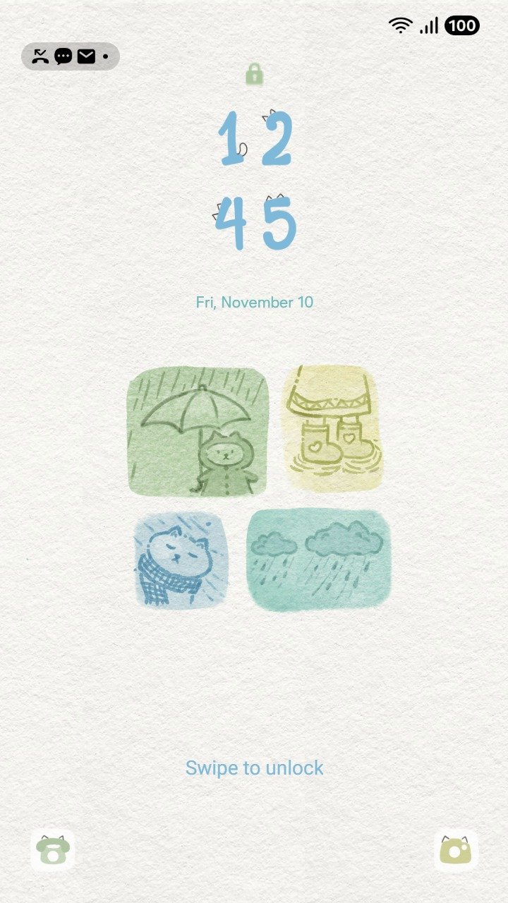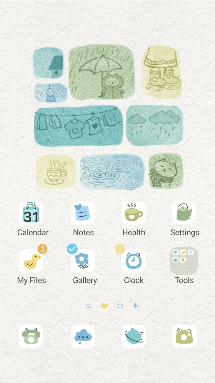 Samsung Themes: ❤️Mun❤️ Rainy Day ~❤️ Premium Theme soft watercolor icons capturing cozy moments on a gentle, rainy afternoon