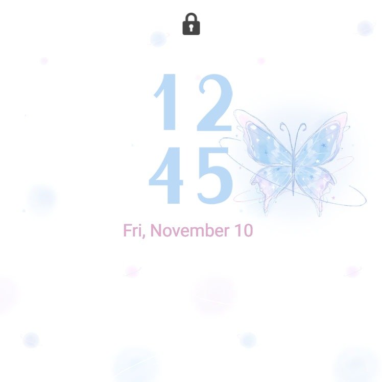 Samsung Themes: ❤️Mun❤️ Sparkling Butterfly ~❤️ Premium Theme a luminous butterfly shimmers softly amid pastel stars