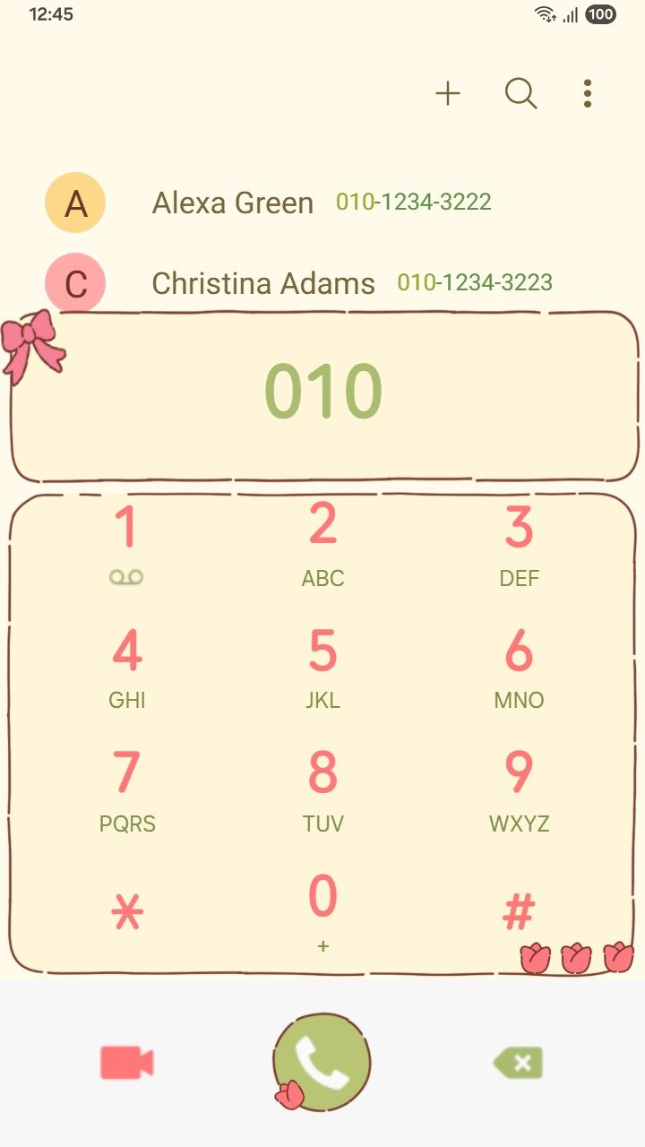 • The dialer and keyboard, including the call button, numbers, and symbols, are customized beyond the default settings to help you stand out with your personal style: