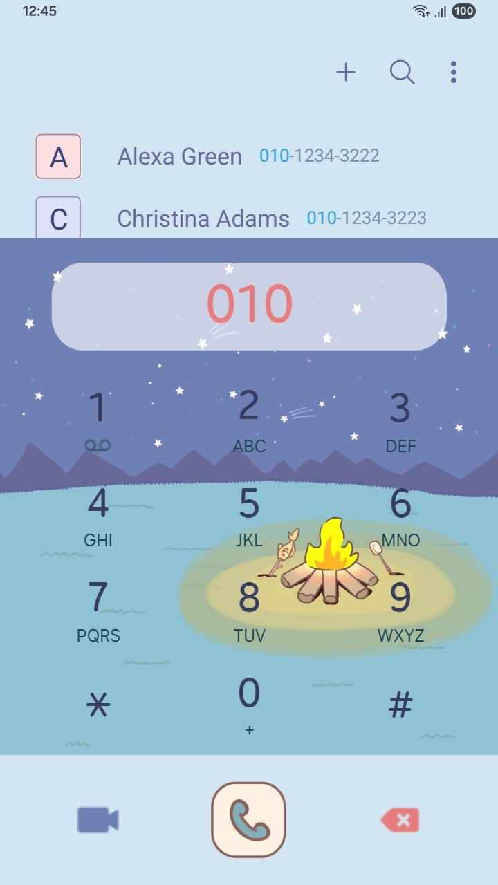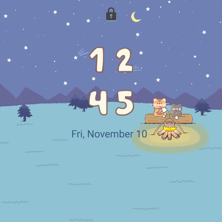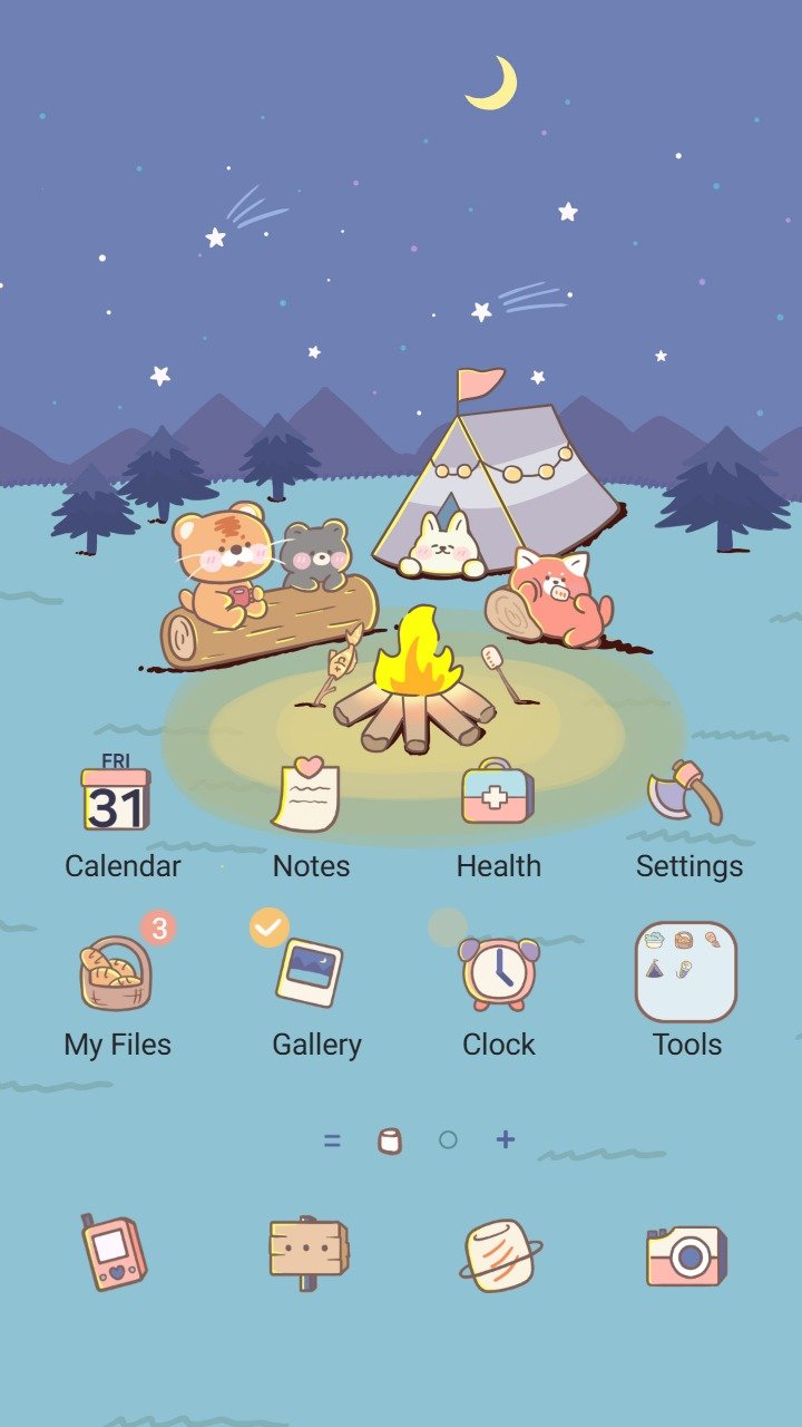 Samsung Themes: ❤️Mun❤️ Starry Campfire ~❤️ Premium Theme cute animails camping by fire under starry sky