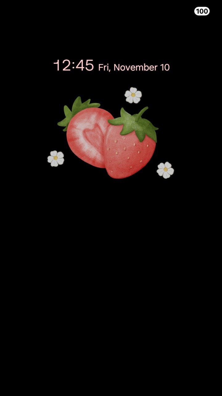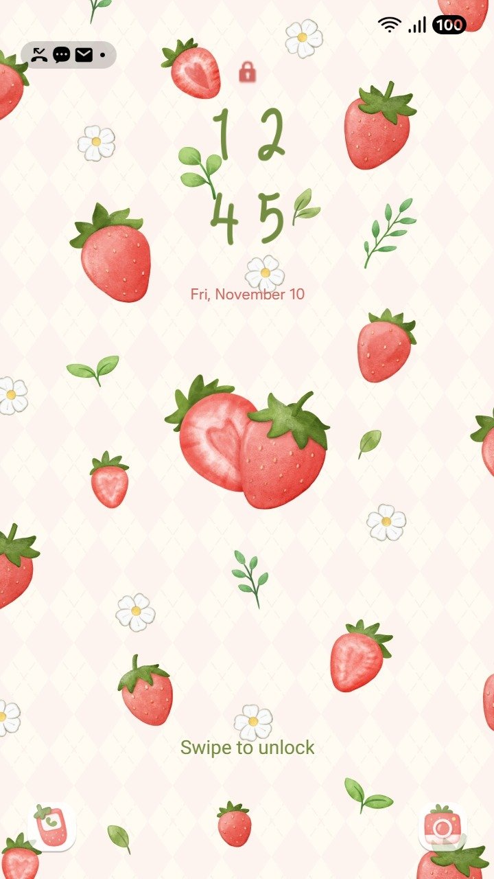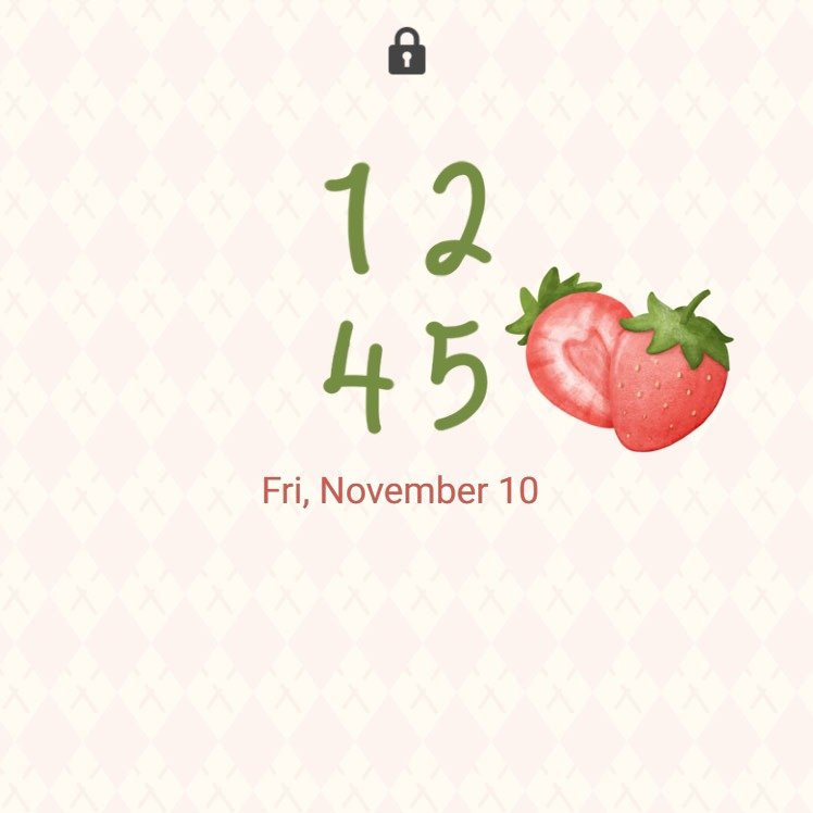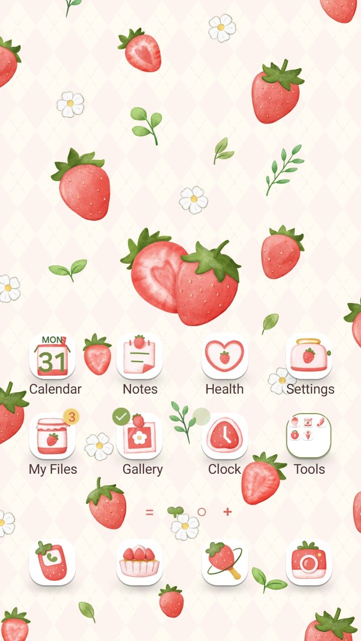 Samsung Themes: ❤️Mun❤️ Strawberry Vibes Video ~❤️ Premium Video Theme strawberries and tiny flowers on a soft diamond background pattern