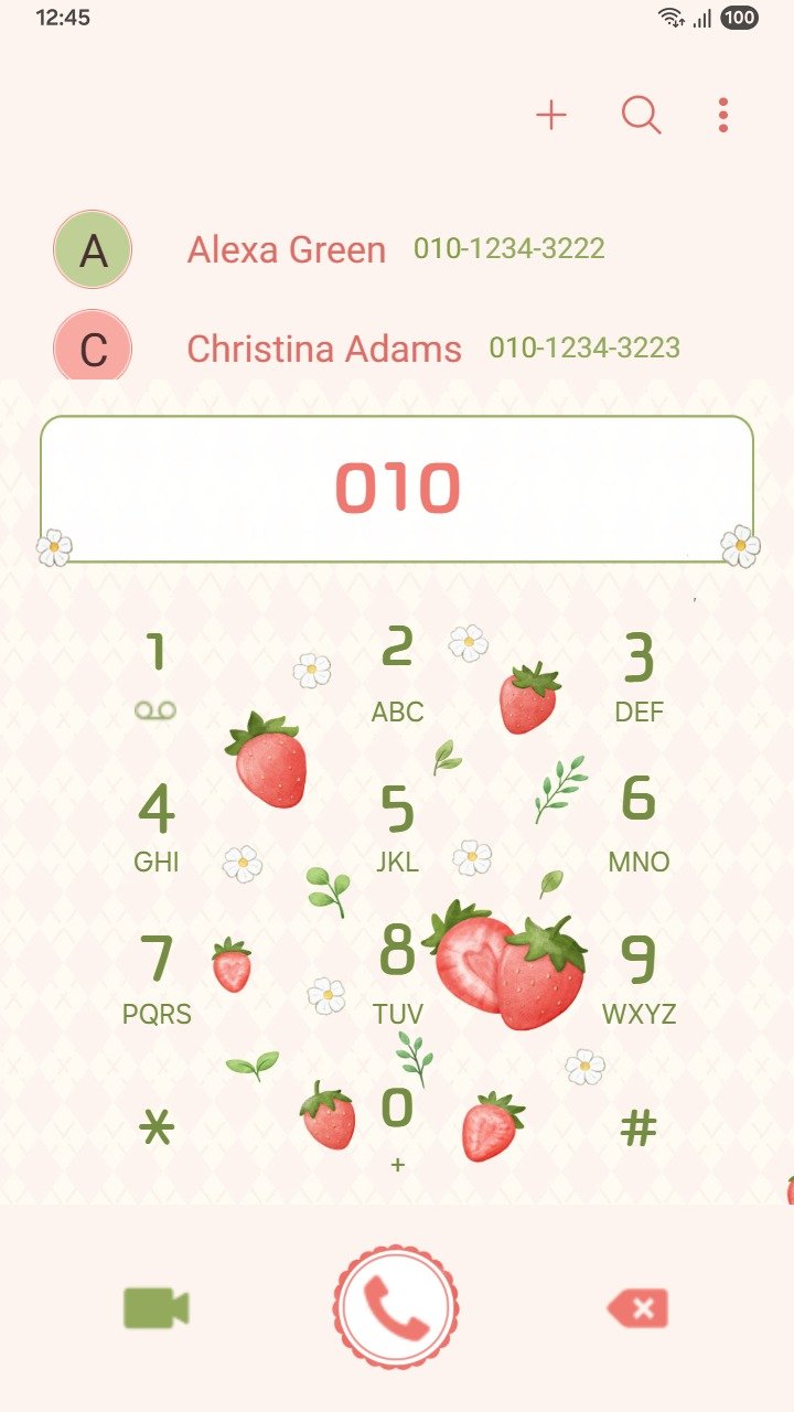 • The dialer and keyboard, including the call button, numbers, and symbols, are customized beyond the default settings to help you stand out with your personal style:
