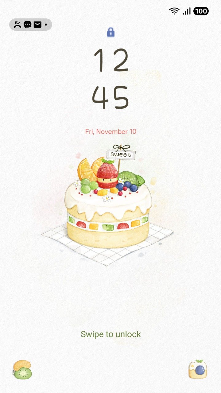 Samsung Themes: ❤️Mun❤️ Sweet Fruit Cake ~❤️ Premium Theme a soft pastel cake topped with colorful fresh fruits