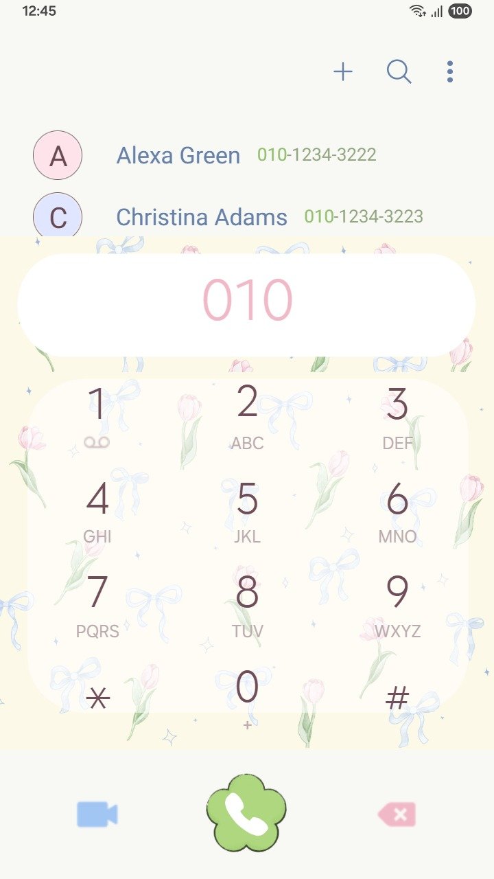 • The dialer and keyboard, including the call button, numbers, and symbols, are customized beyond the default settings to help you stand out with your personal style: