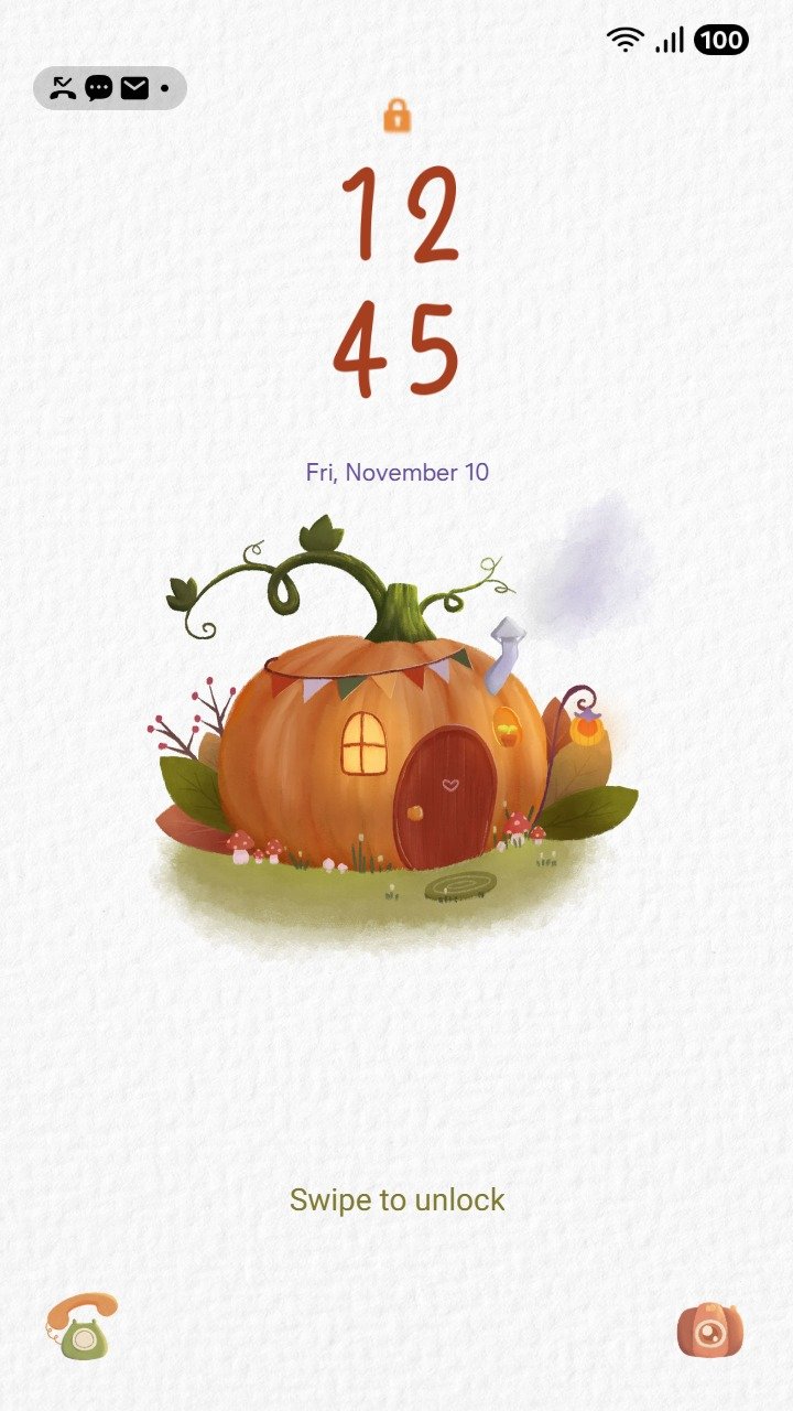 Samsung Themes: [Sim] Autumn Cottage ~ Premium Theme a cheerful mouse lives happily inside a cozy pumpkin-shaped house