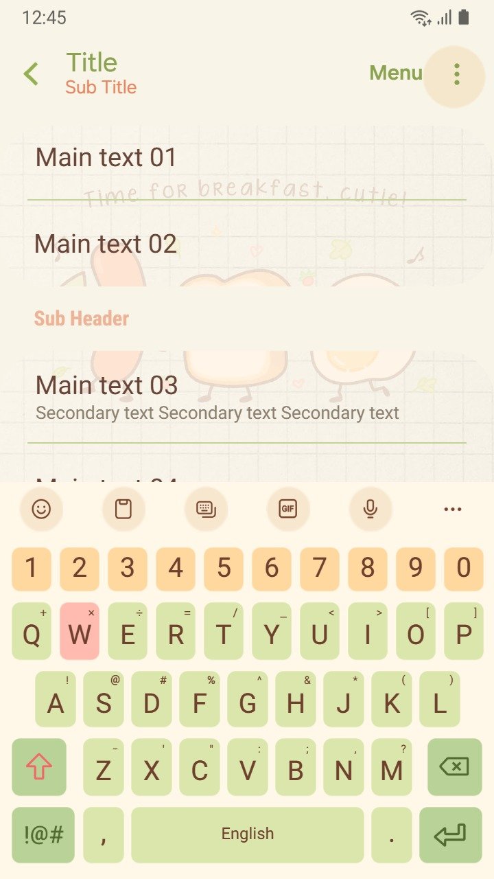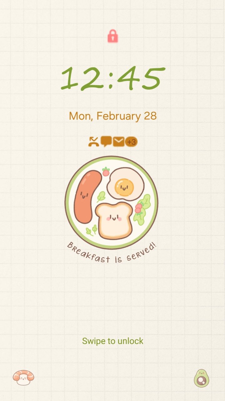 Samsung Themes: [Sim] Breakfast Vibes ~ Premium Theme cheerful sausage, toast, and egg celebrate a fun, musical morning meal