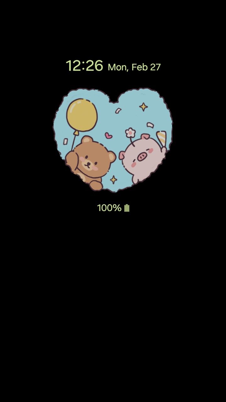 Samsung Themes: [Sim] Heart Glimpse ~ Premium Theme a lovely moment of a bear and pig through a heart-shaped frame