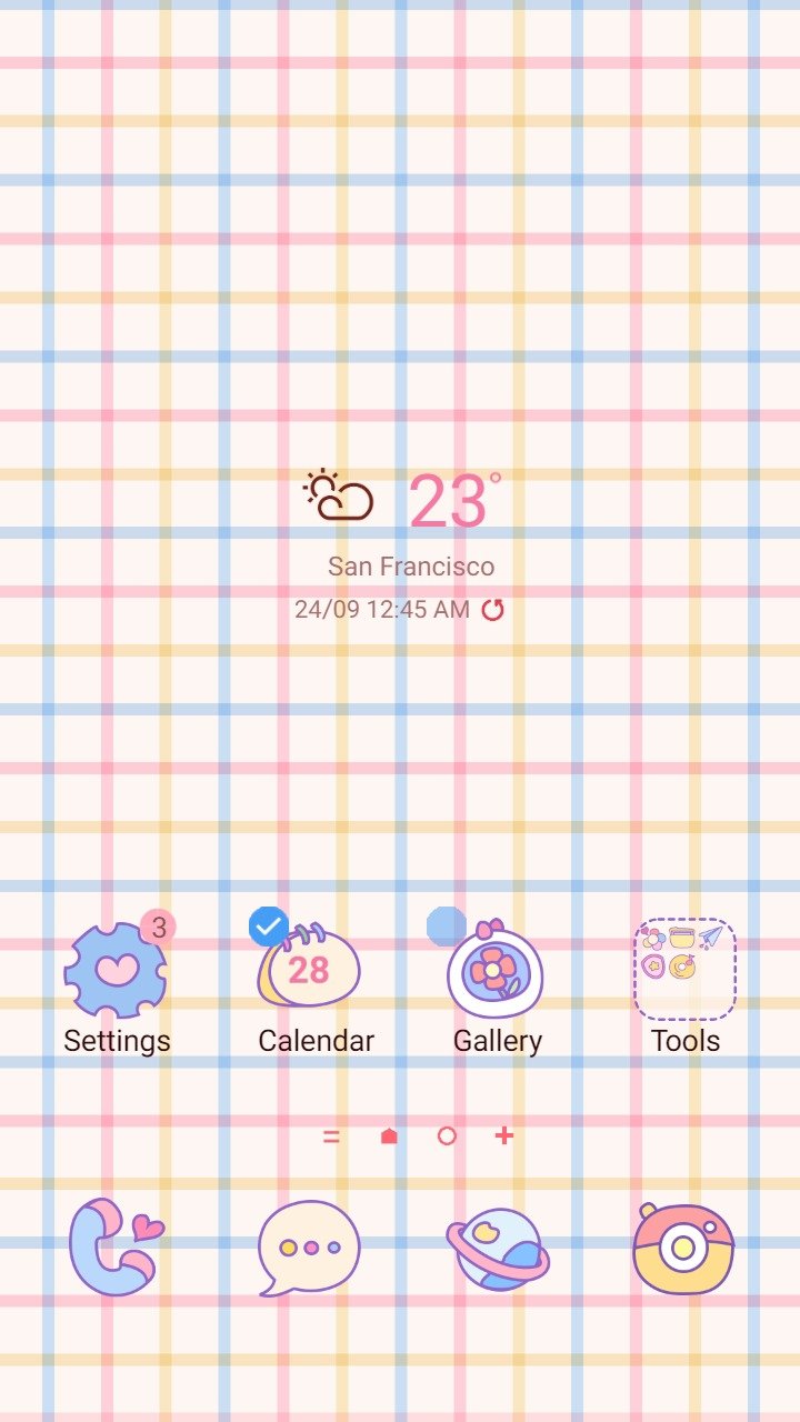 Samsung Themes: [Sim] Pastel Icon ~ Premium Theme simple with checkered stripes and pastel colored icons