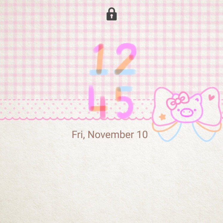 Samsung Themes: [Sim] Piggy Ribbon ~ Premium Theme a soft pink gingham background featuring a cute pig character inside a bow